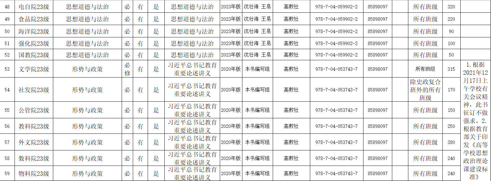 根据教育部《普通高等学校教材管理办法》(教材〔2019〕3号)文件精神,以及学校《关于2023年秋季学期教材选用的通知》文件精神,经成人视频专家组审核,党委把关,现将2023-2024-1学期公共课教材使用情况公示如下: