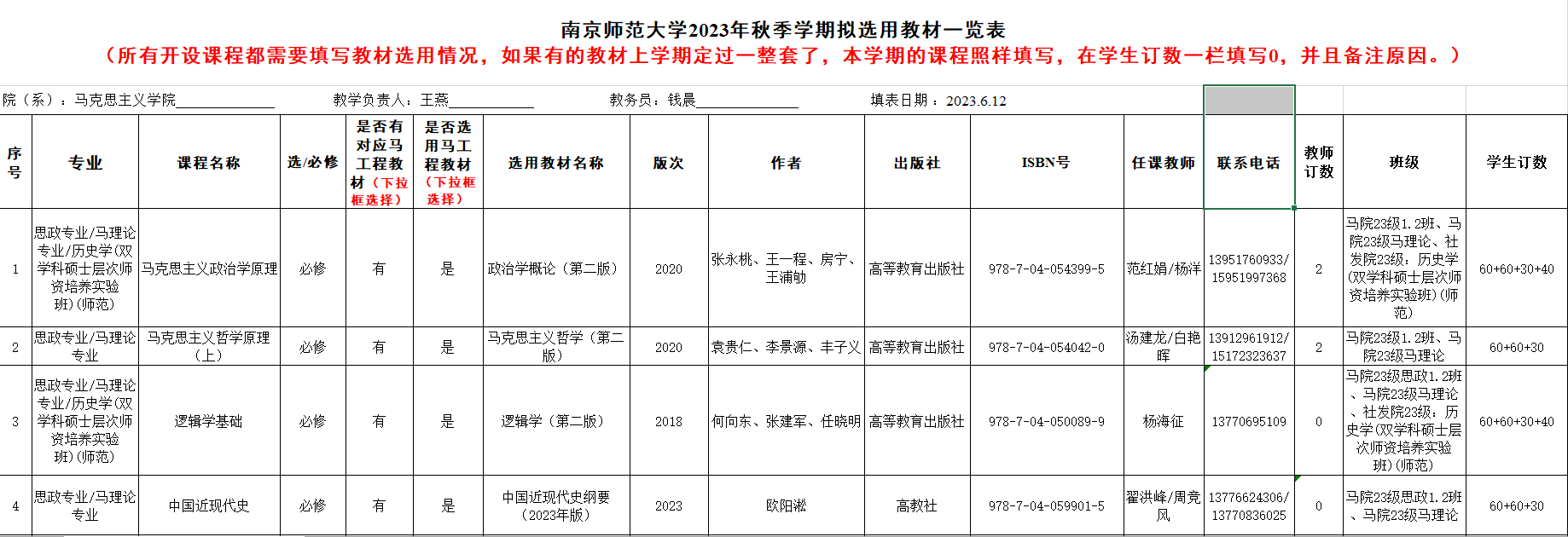 根据《南京师范大学教材管理办法》(宁师大〔2021〕85号)文件精神,以及学校《关于2023年秋季教材选用的通知》文件精神,经过任课教师确定教材,成人视频专家组审核,党委把关,现将2023-2024-1学期的教材使用情况公示如下: