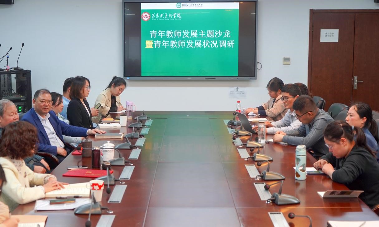 在行敏楼540会议室召开青年教师发展主题沙龙。马院党委书记蒋其琴、院长王刚,青年教师发展导师刘云林教授、曹孟勤教授,专职组织员周莲芳以及近年来入职的近20位青年教师参加会议。会议由蒋其琴主持。