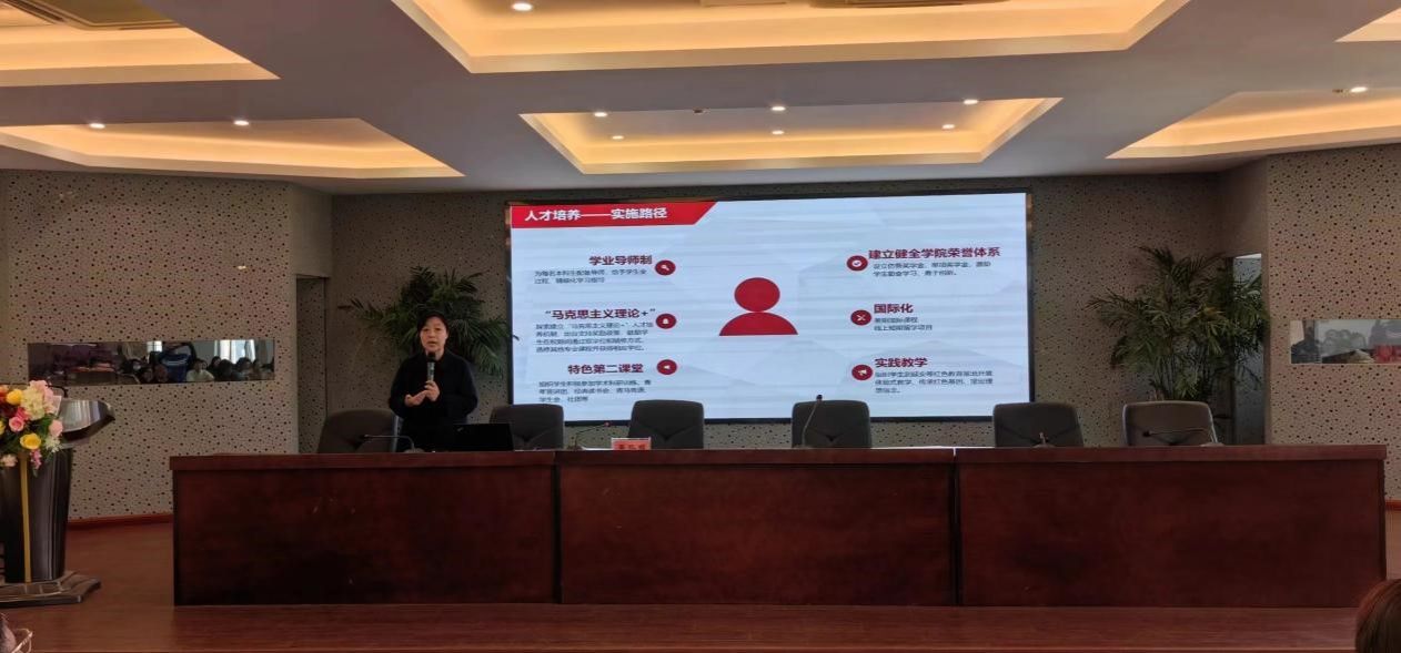 本次交流活动分为两个环节,首先,张路园副院长向全院教师详细介绍了山东大学马克思主义理论本科专业人才培养的情况。山东大学是全国率先招收马克思主义理论本科生的高校之一,目前已经形成了较为完备的马克思主义理论本科人才培养体系。张院长从课程体系、科研训练平台、社会实践等几个方面介绍了山东大学的具体做法,充分体现了精细化培养的理念。王燕副院长主持交流报告会,她在总结中指出,山东大学的特色做法为我们提供了宝贵的经验借鉴,全院教师要凝聚共识,共同推进马克思主义理论本科专业的建设与发展。