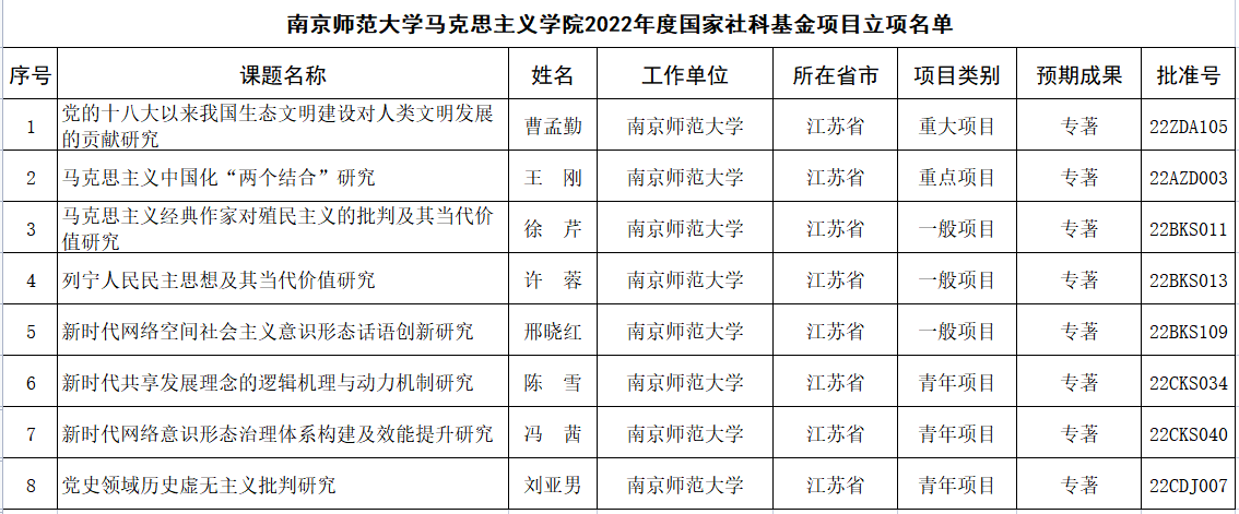 9月30日,全国哲学社会科学工作办公室公布了2022年国家社科基金年度项目和青年项目立项名单,南京师范大学马成人视频