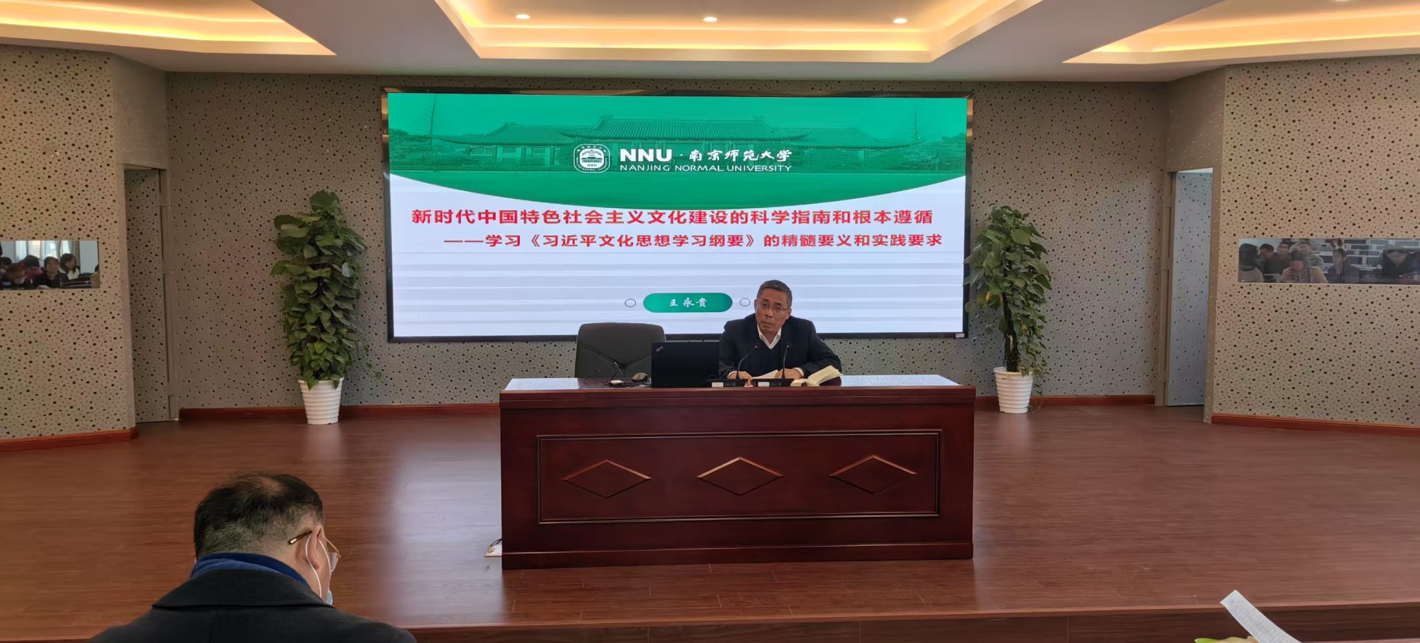 “学习《习近平文化思想学习纲要》讲座于行敏楼542报告厅成功举办。本期讲座以“新时代中国特色社会主义文化建设的科学指南和根本遵循——学习《习近平文化思想学习纲要》的精髓要义和实践要求”为主题,由南京师范大学马成人视频