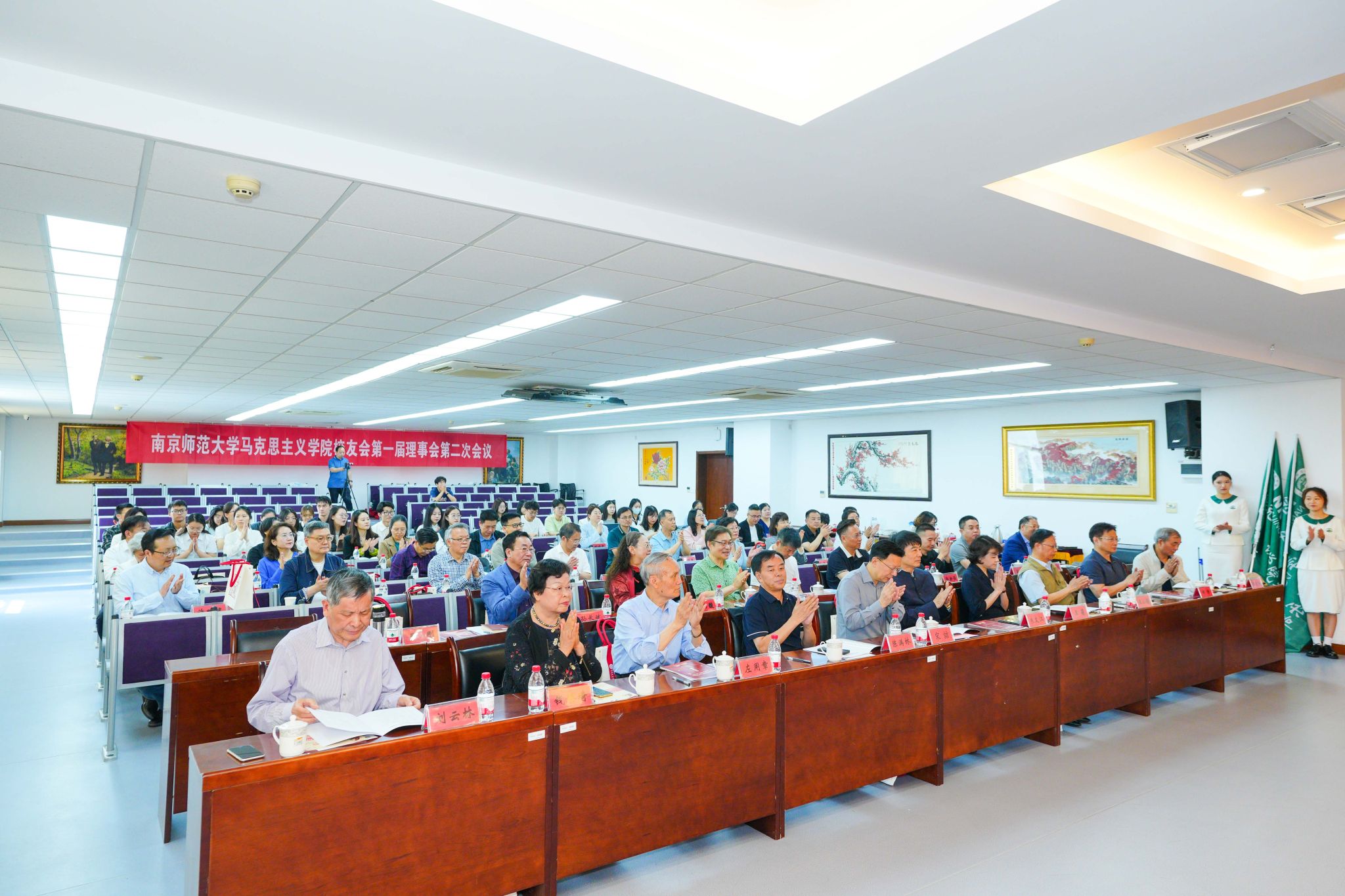 校友会第一届理事会第二次会议在行敏楼542报告厅召开。校友们欢聚母校,共叙同窗情谊、共话母院发展。南京师范大学党委常委、宣传部部长宋喆,校发展委员会主任王莉,马院校友会顾问团历任领导代表,校友会常务理事会和理事会成员,马院师生代表与会。马院党委书记蒋其琴主持会议。