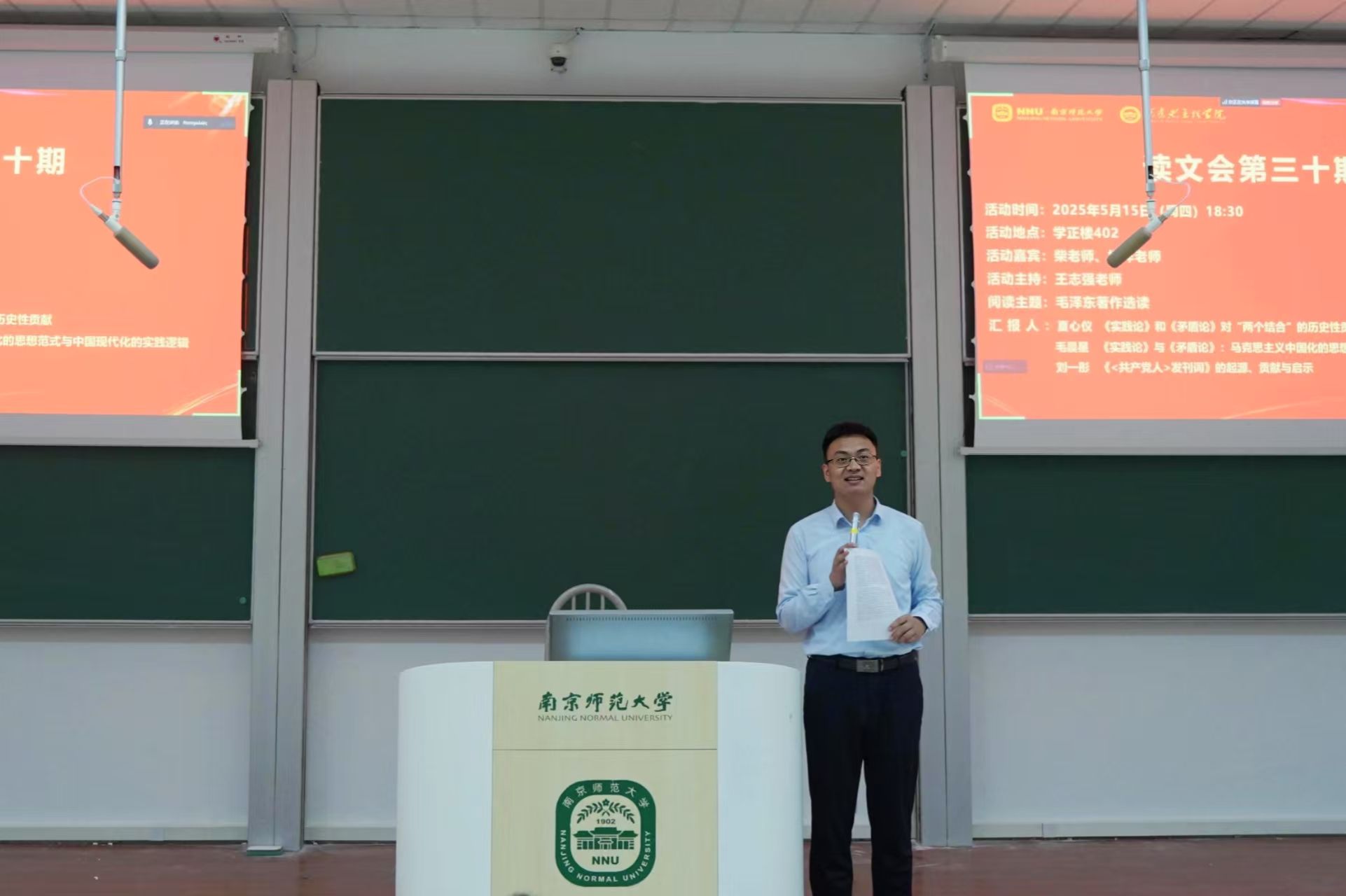 第三十期“读文会”于学正楼402成功举办。本期读文会以“毛泽东著作选读”为主题,具体篇目为《实践论》《矛盾论》《〈共产党人〉发刊词》《中国革命和中国共产党》以及《新民主主义论》,由中南大学马成人视频