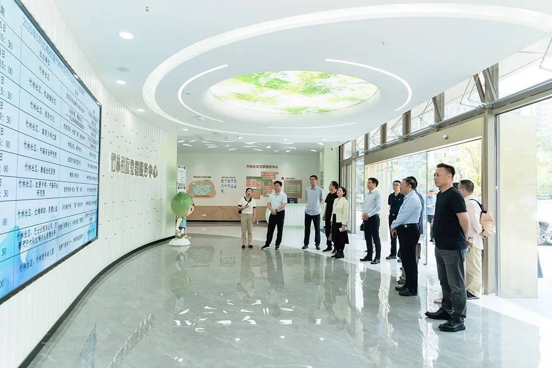 一行首先参观了竹林社区党群服务综合体,竹林社区成立于2024年12月,社区党群服务中心共有2000平方米,引入龙城灶“梅好食光”社区食堂、武阳文化“非遗文创文化”、秋白书苑“竹林馆”等为老中青幼不同年龄段居民提供有效的个性服务支持和多元化服务,为居民打造了一个融合党建、文化、体育和多功能服务的共享空间。在红梅街道整体规划下,引进南京师范大学常州创新发展研究院天宁科创中心(南京师范大学常州校友会)、中淼(常州)安全技术研究院、中国移动常州天宁红梅分局数字展厅等构建“竹林经济圈”,创新打造“竹林社区党群服务综合体”示范点。
