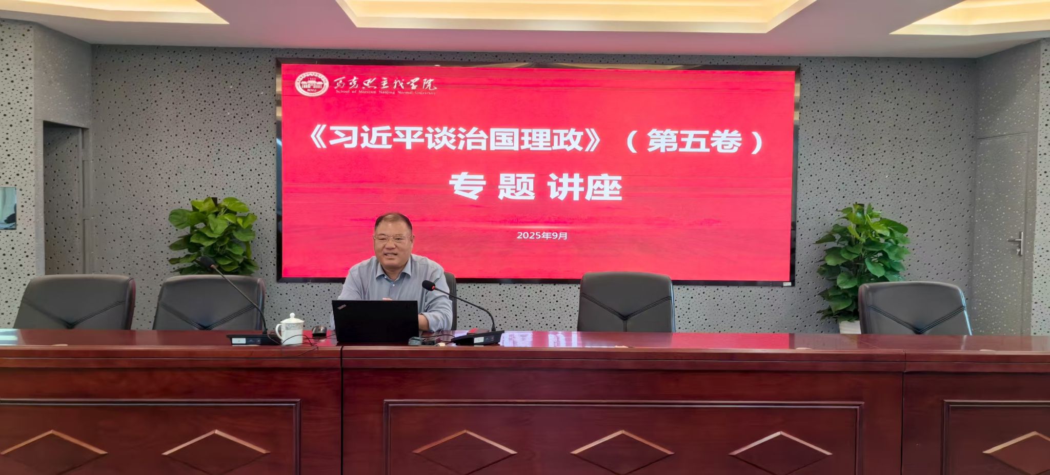 王刚教授作题为“学好用好《习近平谈治国理政》第五卷,深入理解习近平新时代中国特色社会主义思想”的专题讲座。王刚教授从时代背景、实践基础、理论需求与个人条件等方面系统阐述了《习近平谈治国理政》第五卷的形成条件,全面剖析了第五卷十八个专题的编辑框架与内在逻辑结构,并论述了其原创性理论贡献和鲜明特色。他鼓励全院党员和思政课教师认真研读《习近平谈治国理政》第五卷,深刻把握习近平新时代中国特色社会主义思想,自觉运用党的创新理论武装头脑、指导实践、推动工作。