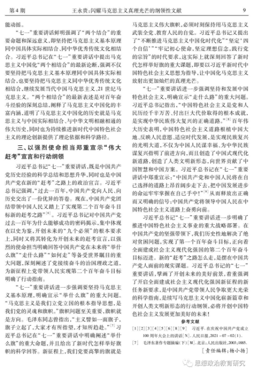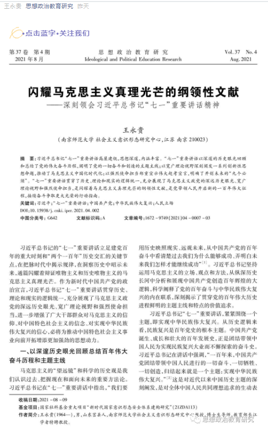 王永贵:闪耀马克思主义真理光芒的纲领性文献 ——深刻领会习近平总书记“七一”重要讲话精神